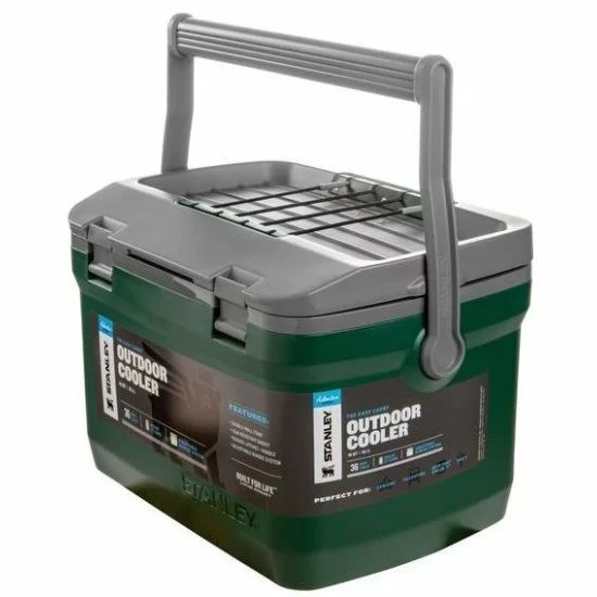 La glacière Stanley 15,1 litres est une élégante glacière qui contient pas moins de 21 33cl. Les boîtes peuvent être conservées au réfrigérateur pendant 36 heures. La glacière est extrêmement lourde avec des charnières robustes et une poignée solide. Cette glacière est même si solide que vous pouvez vous asseoir dessus. De plus, vous pouvez facilement emporter votre bouteille Stanley Thermos sous l’élastique du couvercle. La belle couleur verte et les propriétés isolantes parfaites rendent cette glacière extrêmement adaptée à une utilisation en plein air et à la pêche.